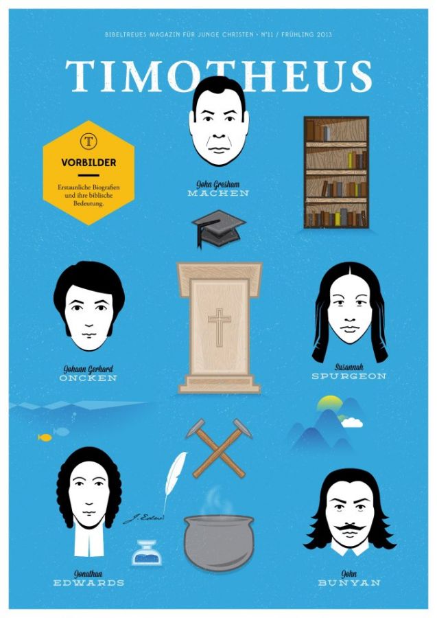 Obschon wir in manchen Timotheus-Ausgaben schon vereinzelt Kurz-Biographien entdecken konnten, gibt es in der nunmehr 11. Ausgabe des Timotheus-Magazins eine ganze Reihe von Kurzbiographien unter dem Thema „Vorbilder“. Grundlegend für das Heft ist der einführende Artikel „Vorbilder des Glaubens“, wo auch dargelegt wird, warum es sinnvoll ist, sich mit Vorbildern zu beschäftigen. Daraufhin folgen die Biographien von 5 Personen, die