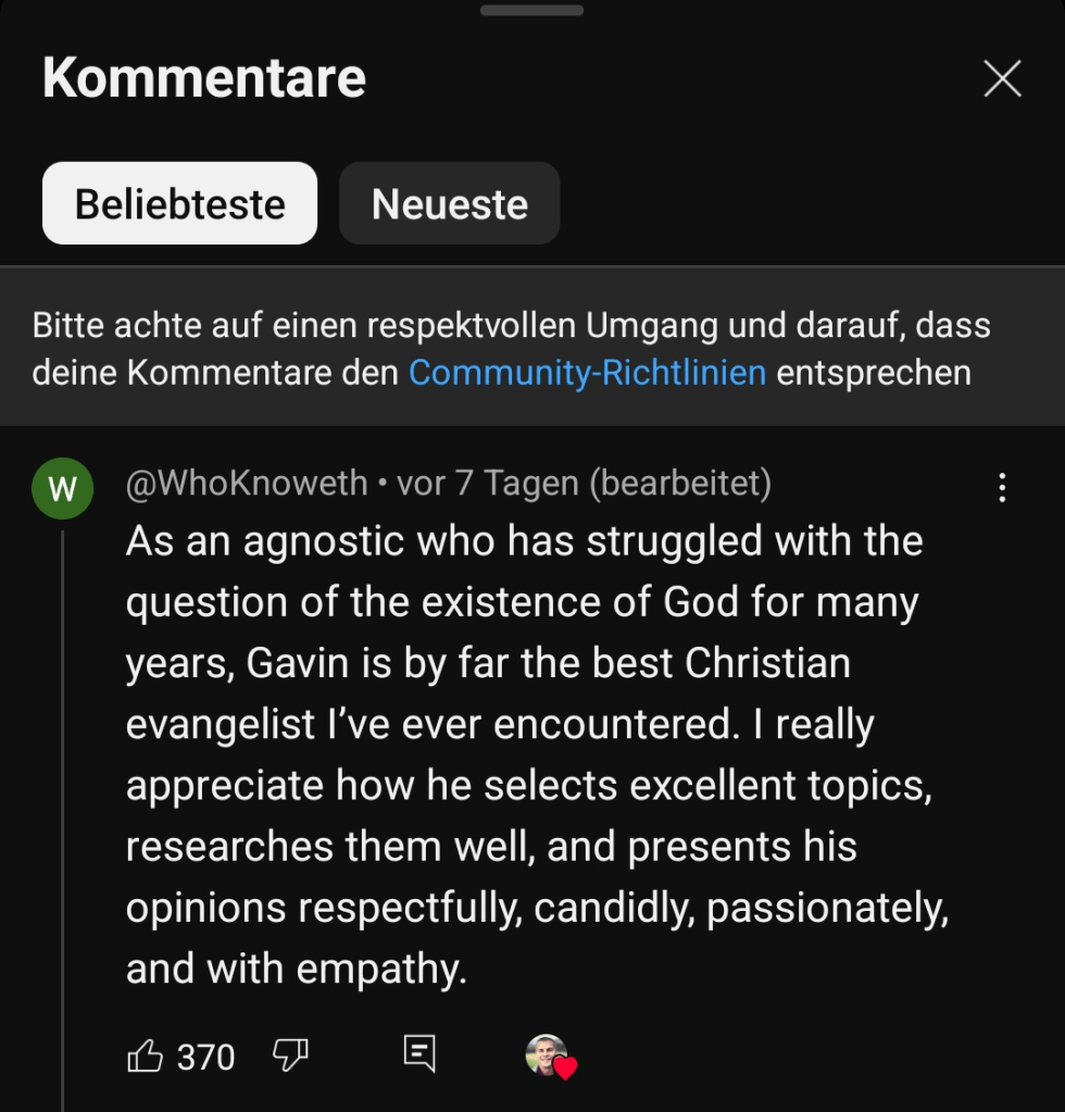 Ich fand den Kommentar eines Agnostikers unter dem Video sehr aussagekräftig