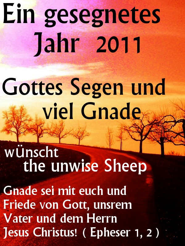 Ich wünsche auch allen Lesern viel Gnade fürs Nächste Jahr. Wir haben sie nötig und bedürfen ihrer jeden Tag, jede Stunde.Wo kämen wir hin ohne IHN, der nicht nur der Schöpfer, sondern bis zum heutigen Tag der Erhalter unseres Lebens und der Geber unseres ewigen Lebens ist?